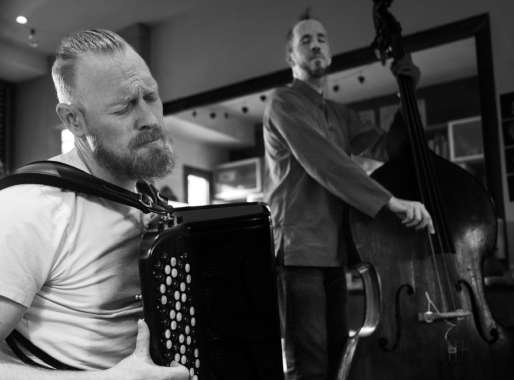 Thomas Julienne and Laurent Derache, two artists with distinguished careers, present a distinctive repertoire blending impressionist compositions, reinterpretations of songs such as Nick Drake’s Day is Done, and reimagined jazz standards. Their collaboration embodies a captivating musical dialogue between double bass and accordion.